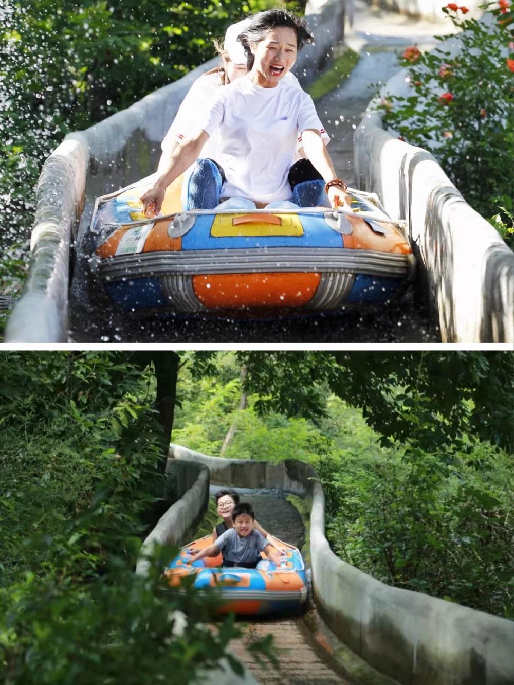 滑道全長1088米,宛如一條長龍,依山勢蜿蜒而下,總落差近400米?;婪秩?,首段處極峰之巔,可覽漫山盛景;中段陡峭驚險,可享急速體驗;末段九曲盤旋,可浴幽谷清風(fēng)。