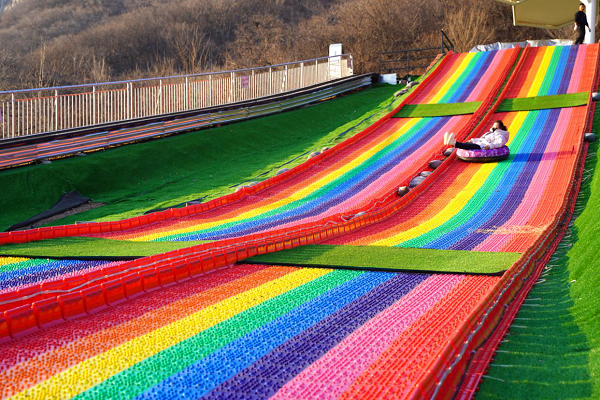 山地滑車旁邊的七彩滑道長(zhǎng)300米,波瀾起伏,宛如從高處傾瀉而下的彩虹。五條滑道 ,三種玩法,兼具速度與激情,滿眼都是浪漫色彩,徜徉其中,收獲彩虹般的美好心情。結(jié)束后可乘坐飛天魔毯返回起點(diǎn),快樂(lè)不停歇~