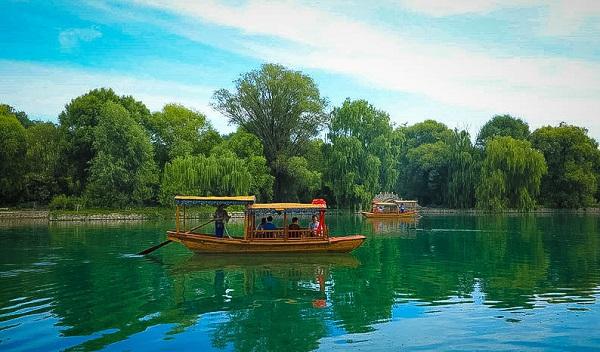 老龍灣搖櫓船可乘坐八名游客,沿老龍灣主水面環(huán)游一圈,時長半個小時。置身湖中,一邊聆聽船妹子講解老龍灣的前世今生,哼唱各種小調;一邊隨著船身的搖晃欣賞兩岸的美景,置身于老龍灣的美景中宛若“人在畫中游”。
