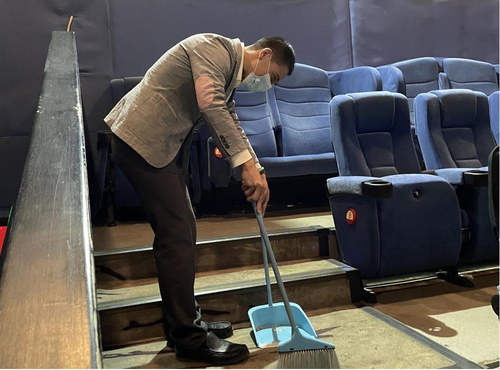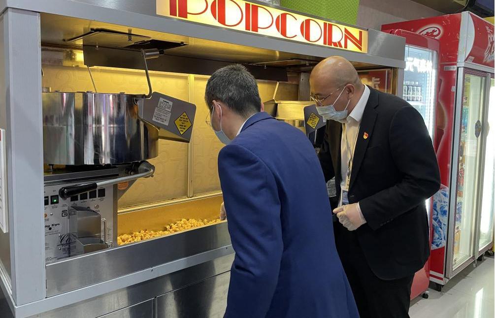 集團黨委委員、副總經(jīng)理、機關(guān)黨委書記孫超和一支部的成員一道,通過為顧客制作爆米花和飲品、對影廳進行消毒和衛(wèi)生清理,體驗了影城經(jīng)營一線的日常服務項目。