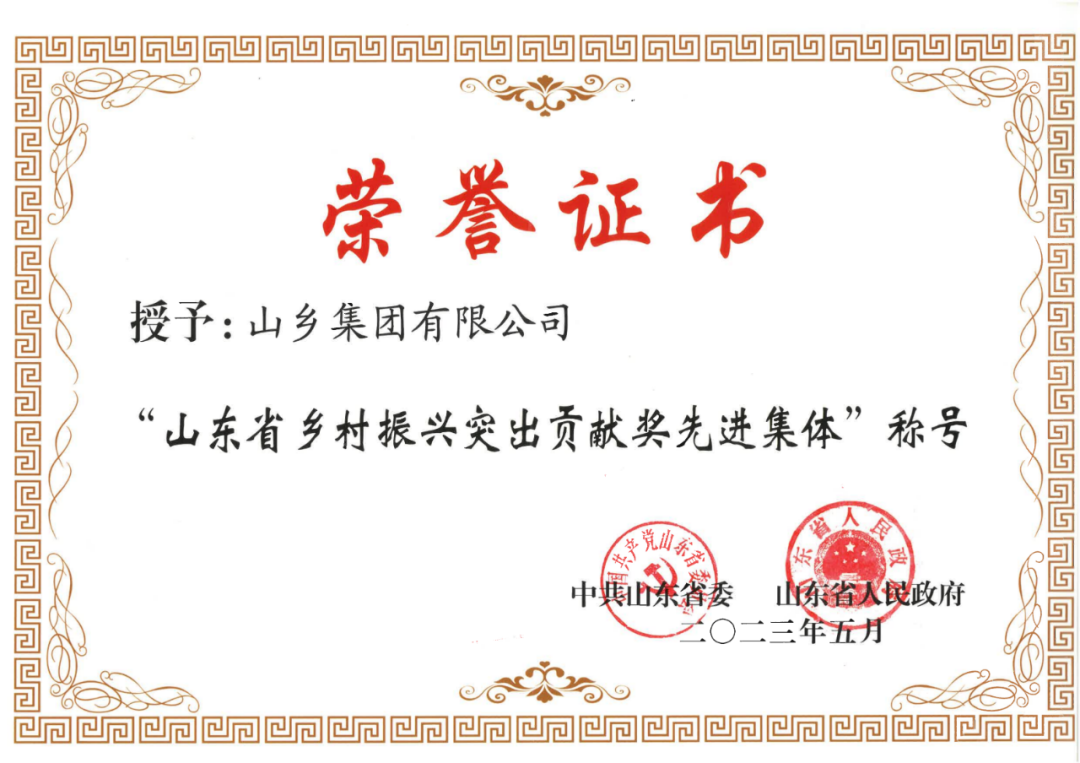 榮獲全省鄉(xiāng)村振興突出貢獻獎先進集體,既是對公司鄉(xiāng)村振興工作的認可和肯定,更是莫大的鞭策和激勵。下一步,山鄉(xiāng)集團將堅持以習近平新時代中國特色社會主義思想為指引,深入貫徹習近平總書記關于“三農”工作的重要論述,認真落實省委、省政府決策部署,全面推進鄉(xiāng)村振興,爭當行業(yè)領軍企業(yè),為推動鄉(xiāng)村振興齊魯樣板取得更為明顯的實質性進展、農業(yè)農村現(xiàn)代化邁出新步伐作出更大貢獻。