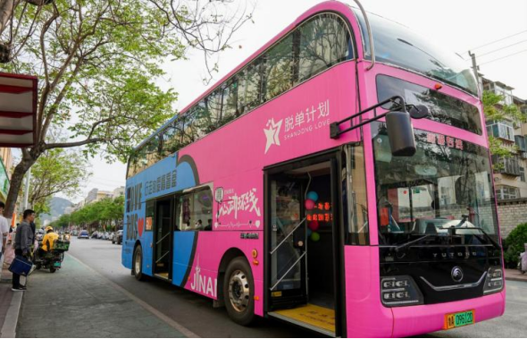 “心動(dòng)環(huán)線”濟(jì)南單身青年社交專線創(chuàng)新采用“城市文化+社交互動(dòng)”模式,每周末和節(jié)假日持續(xù)發(fā)車,沿途設(shè)有11個(gè)站點(diǎn),串聯(lián)起大明湖、趵突泉、綢帶公園(CBD)、泉城廣場與山6創(chuàng)意園等15處城市文化地標(biāo),打造“一程多站”的青春社交環(huán)線。