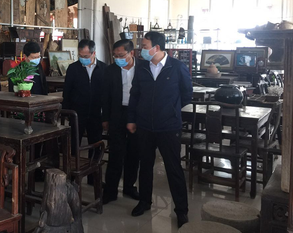 在陽信縣水落坡民俗文化產業(yè)園,高洪雷一行考察了鼎龍、魯木匠、寰宇盛大骨雕、瑞鑫等民俗文化品牌。水落坡鎮(zhèn)古典家具行業(yè)歷史悠久、資源豐富,是“中國古典家具之鄉(xiāng)”“中國明清家具、木雕、石刻集散基地”“中國首個收藏文化名鎮(zhèn)”。高洪雷對相關產業(yè)發(fā)展現(xiàn)狀進行了調研。