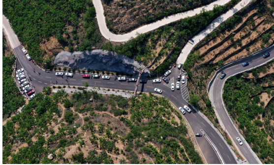 道朗鎮(zhèn)里峪村通往八樓、東西門村的盤山路上車輛絡(luò)繹不絕,去年剛剛修建的盤山公路成了不少游客自駕游的不二之選,蜿蜒曲折的盤山路不僅能讓游客一覽沿途壯美風景,更是體驗了一把賽車手的駕馭之感。