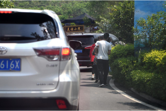 游客車輛穿梭村落內(nèi)的小道,小山村內(nèi)竟出現(xiàn)難得一見的“堵車”盛況。