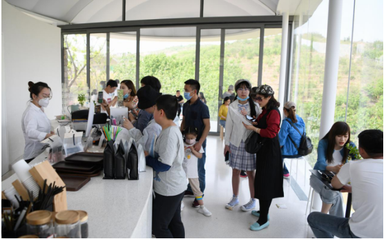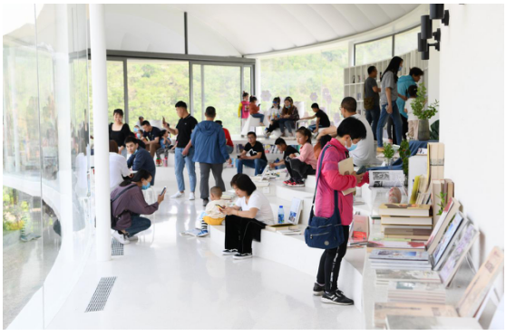 在九女峰“故鄉(xiāng)的云”書房內(nèi),五湖四海的游客慕名而來,盡享云朵里讀書的愜意……