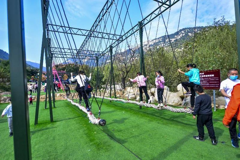 沂蒙山貨花車-豐收大巡游營造出熱鬧喜慶的節(jié)日氛圍,展現(xiàn)出沂蒙山蓬勃的時代氣象和光明的振興圖景。10月1日,“唱起小調(diào)慶豐收-百姓大戲臺”開演,沂蒙山小調(diào)等沂蒙民歌演唱、舞獅、腰鼓、秧歌、快板等精彩的民俗巡游演出吸引了眾多游客駐足觀看。國慶期間,繼蹦極項目正式開放后,天蒙千米高空滑翔傘項目正式對外開放,吸引了眾多游客前來體驗飛行的樂趣,飛瞰祖國壯麗河山。天蒙山的超級網(wǎng)紅親子游樂園也正式開園,多人秋千、網(wǎng)紅蹺蹺板、槍林彈雨射擊場等20余個游樂項目,進一步豐富完善了天蒙的旅游產(chǎn)品體系。