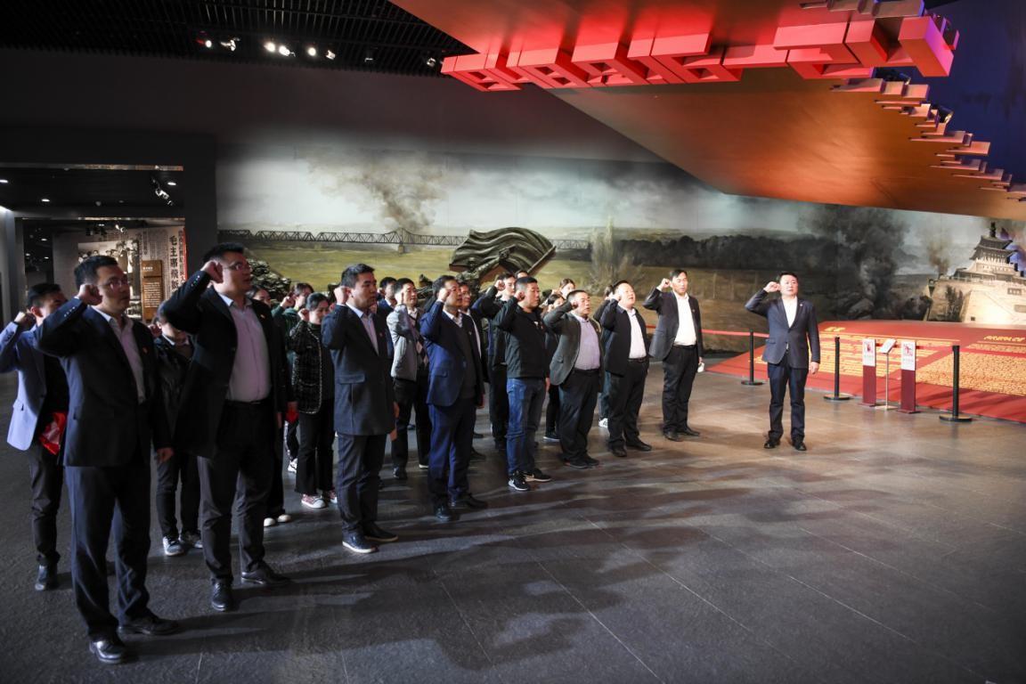 在濟(jì)南戰(zhàn)役紀(jì)念館,由支部委員曲端正領(lǐng)誓,鄉(xiāng)發(fā)展黨員干部職工重溫入黨誓詞,不忘入黨初心。隨后,大家在講解員的帶領(lǐng)下參觀了陳列展廳。一張張老照片、一個個老物件,重現(xiàn)了當(dāng)年濟(jì)南攻堅戰(zhàn)激烈壯觀的場面。革命先輩們?nèi)f眾一心、團(tuán)結(jié)奮戰(zhàn)、同仇敵愾、勇于攻堅、嚴(yán)格紀(jì)律的精神深深觸動著在場的每一個人。在觀看全景畫《濟(jì)南戰(zhàn)役》時,大家仿佛又回到了那段崢嶸歲月,為曾經(jīng)的那場悲壯戰(zhàn)斗所震撼。最后,全體人員瞻仰革命烈士紀(jì)念塔,緬懷先烈事跡,激起深厚的愛國情懷。