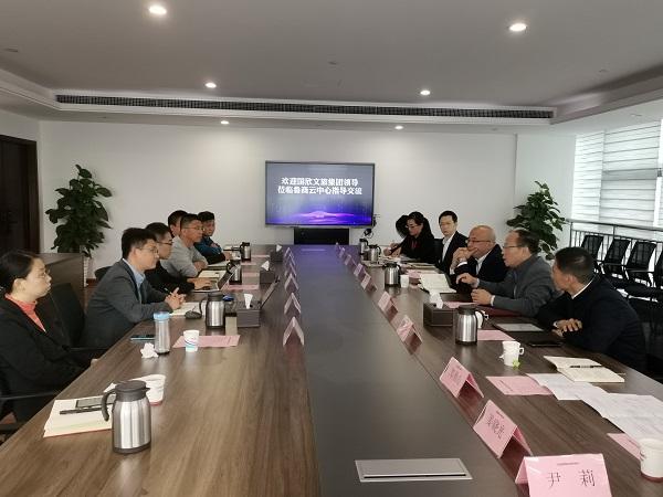 10月29日上午,省國欣文旅集團一行到魯商云智能科技中心(以下簡稱“魯商云”)考察交流信息化系統(tǒng)建設(shè)工作。集團黨委委員、副總經(jīng)理孫超,集團黨委委員、紀委書記王振江,集團財務總監(jiān)、外部董事高振斌參加交流。