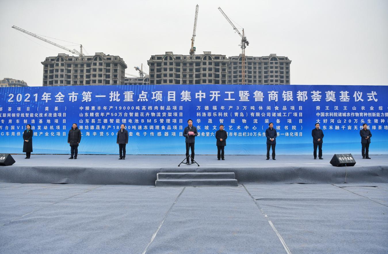 奠基儀式上,諸城市委副書記、市長王浩作了致辭,市委副書記李慶華主持會議。諸城市各鎮(zhèn)街園區(qū)黨(工)委書記、市直有關(guān)部門主要負(fù)責(zé)同志,鄉(xiāng)發(fā)展集團(tuán)諸城項(xiàng)目部全體人員參加活動。