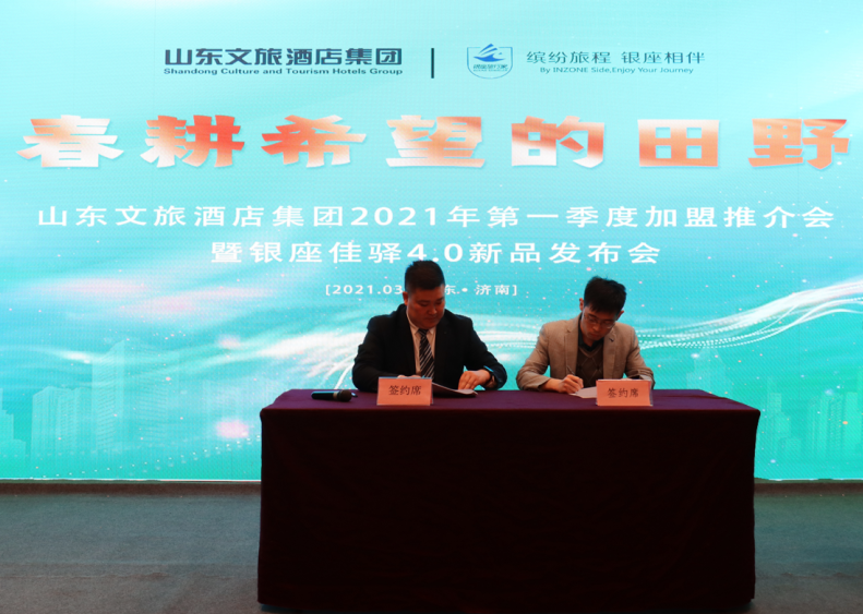 除大眾商旅品牌外,山東文旅酒店集團旗下各中端及軟品牌負責人分別對相關品牌進行推介。會上,加盟商代表們暢所欲言,表達對文旅酒店品牌的認可和信賴。“山東文旅酒店集團是山東酒店品牌的領軍者,2020年疫情期間,對加盟店推出了諸多扶持政策,真正體現了國企擔當。做酒店,我就選文旅酒店?!蹦壳耙延?家加盟門店的馬先生代表了很多加盟商的心聲?!耙咔槌B(tài)化下酒店迎來新商機,選擇山東文旅酒店集團旗下品牌代表著先人一步搶奪了本土酒店生意紅利!”剛剛完成簽約的諸葛先生表示。