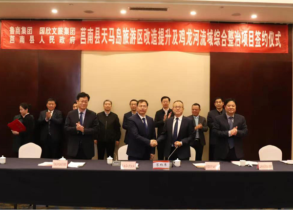 3月23日上午,魯商集團、國欣文旅與臨沂市莒南縣天馬島旅游區(qū)及雞龍河流域綜合整治項目簽約儀式在莒南縣舉行。魯商集團黨委書記、董事長兼國欣文旅董事長高洪雷,臨沂市委常委、市政府常務(wù)副市長侯曉濱出席簽約儀式并分別致辭。臨沂市政協(xié)副主席譚慶功,魯商集團黨委副書記、董事劉守亮,國欣文旅黨委委員、副總經(jīng)理、山東文旅景區(qū)集團黨委書記、董事長季將參加。莒南縣委書記、臨港經(jīng)濟開發(fā)區(qū)黨工委書記張佃虎主持。