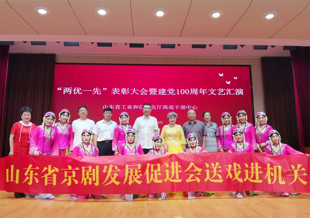 6月29日,山東省京劇發(fā)展促進會走進山東省工業(yè)和信息化廳離退干部中心,共同舉辦建黨100周年文藝匯演暨送戲進機關(guān)活動。山東文旅投資集團有限公司(簡稱“山東文旅投資集團”)黨委書記、董事長兼山東省京劇發(fā)展促進會副理事長王化龍參加活動。