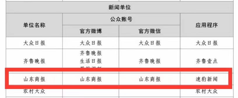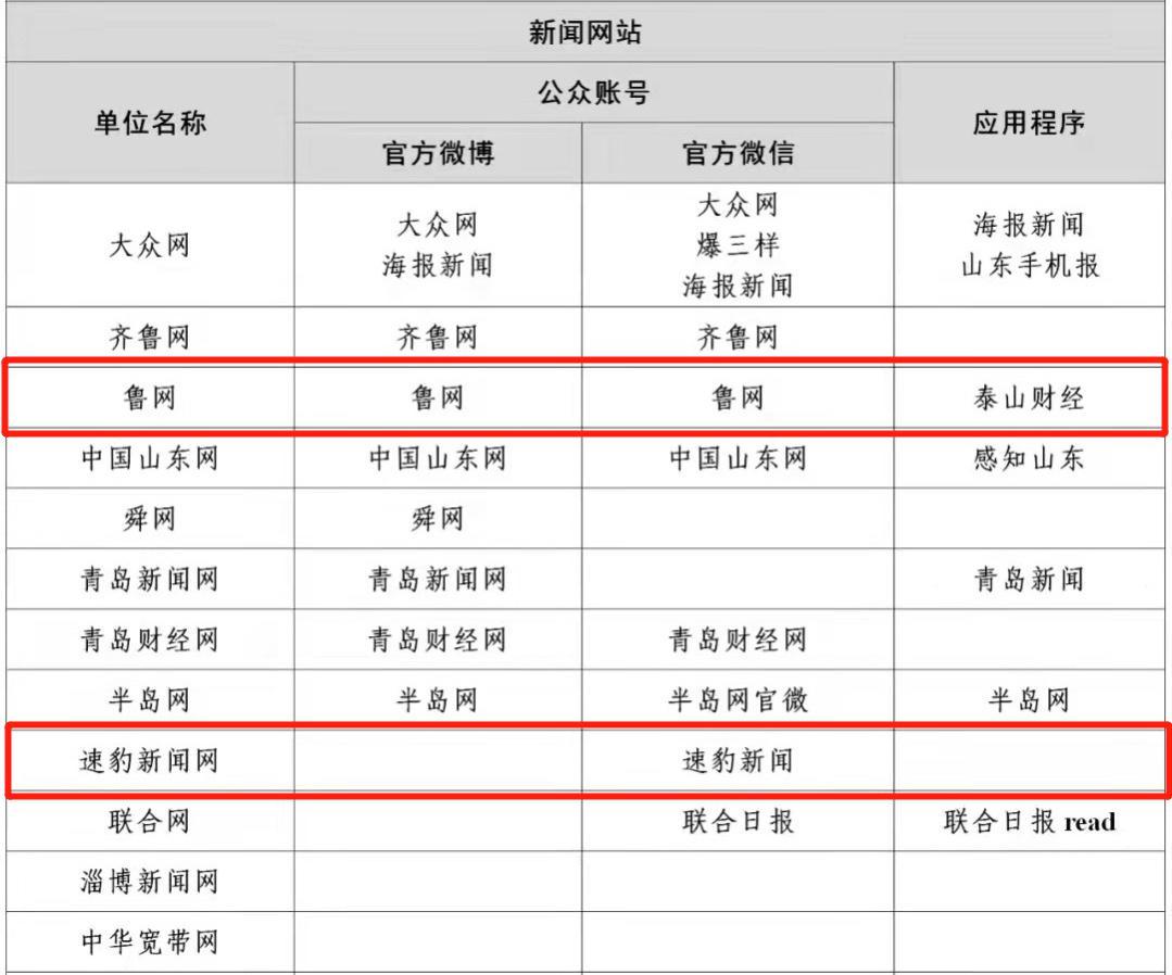 10月20日,國家網(wǎng)信辦公布了最新版互聯(lián)網(wǎng)新聞信息稿源單位名單,山東文旅傳媒集團(tuán)旗下三家省級媒體山東商報(bào)、魯網(wǎng)、速豹新聞網(wǎng)的十個(gè)平臺均被納入。
