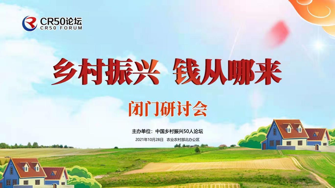 10月28日,由中國(guó)鄉(xiāng)鎮(zhèn)企業(yè)協(xié)會(huì)鄉(xiāng)村振興工作委員會(huì)(簡(jiǎn)稱“中國(guó)鄉(xiāng)村振興工作委員會(huì)”)、中國(guó)鄉(xiāng)村振興50人論壇(簡(jiǎn)稱“CR50”)、山東省鄉(xiāng)村振興齊魯樣板研究院(簡(jiǎn)稱“齊魯樣板研究院”)聯(lián)合主辦的“鄉(xiāng)村振興錢從哪里來(lái)?”閉門研討會(huì)在北京·全國(guó)農(nóng)業(yè)展覽館舉行。