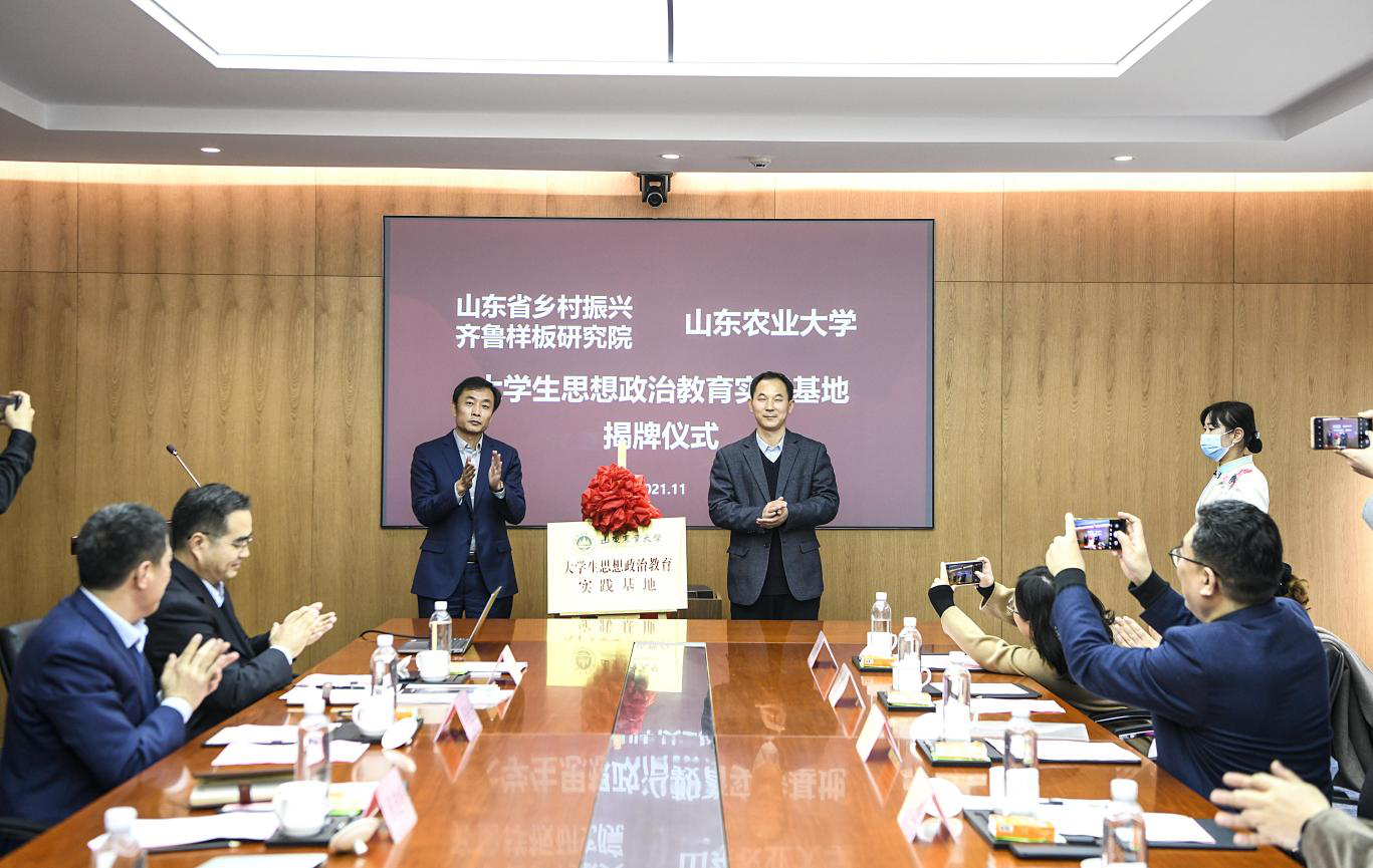 在簽約暨揭牌儀式上,雙方簽署了《共建協(xié)議書》,并為“山東農(nóng)業(yè)大學(xué)大學(xué)生思想政治教育實踐基地”揭牌。