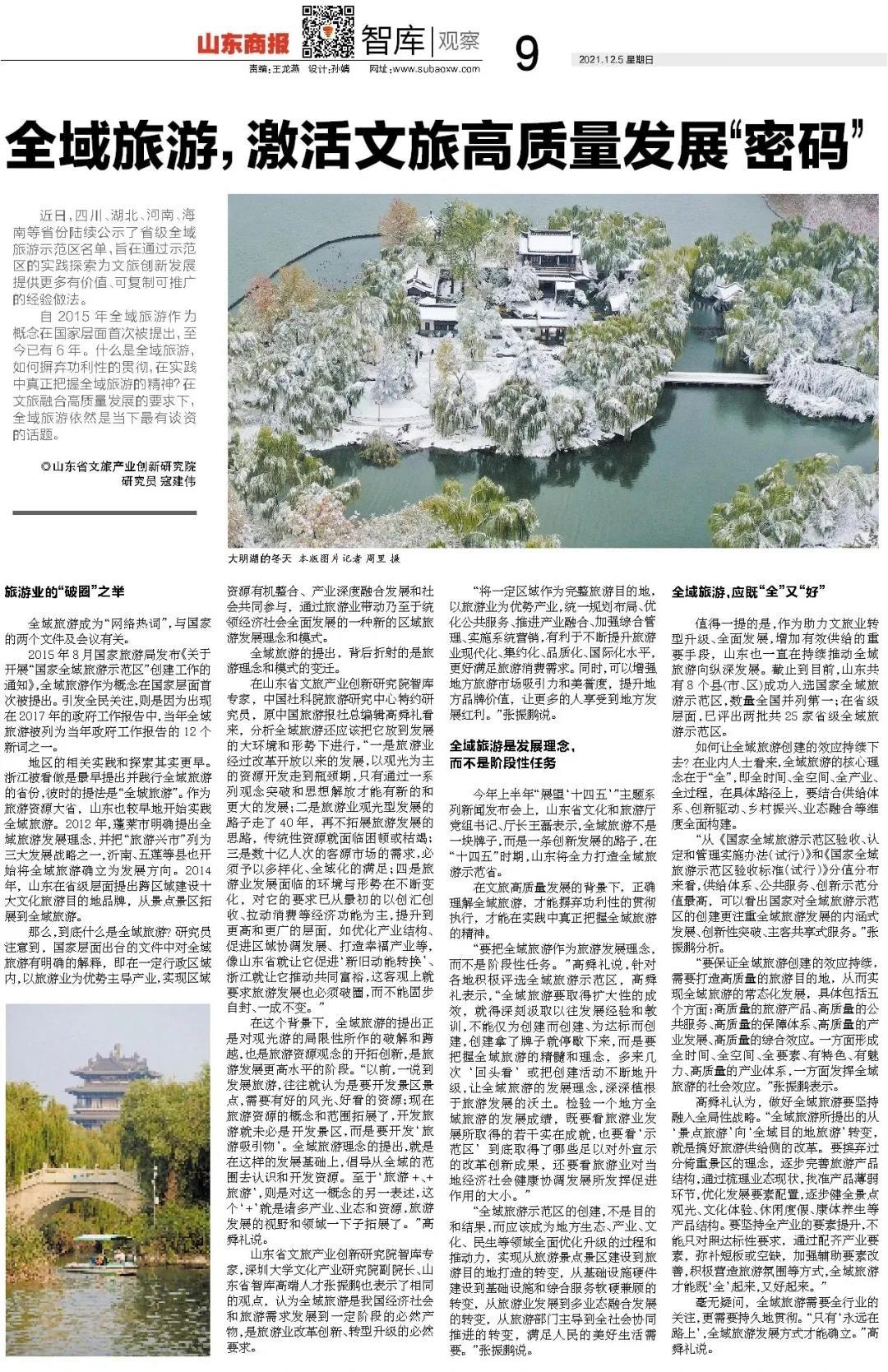 洞察文旅,智慧引領(lǐng)。12月5日,山東省文旅產(chǎn)業(yè)創(chuàng)新研究院在山東商報(bào)開設(shè)的智庫版正式亮相。