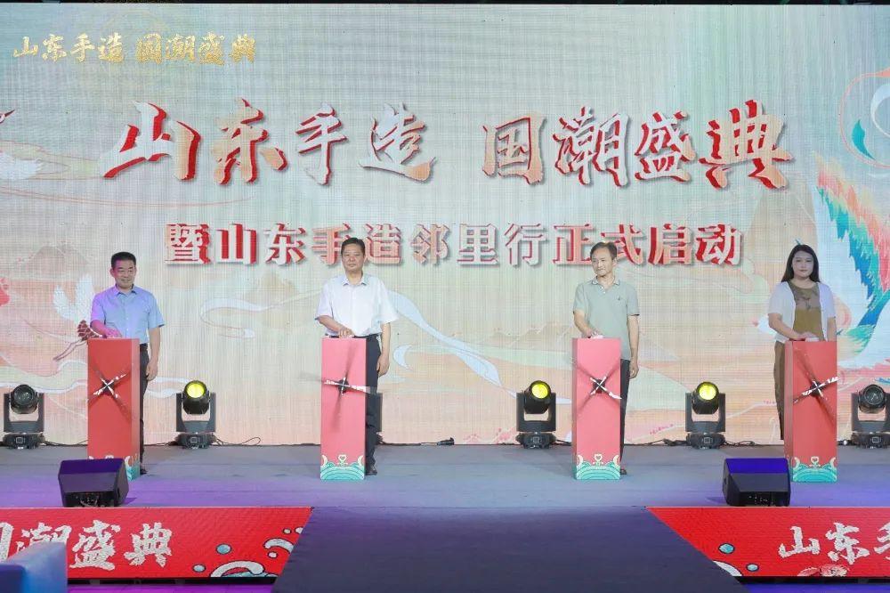 活動現(xiàn)場,山東文旅集團黨委副書記季將、山東省文旅廳非遺處處長劉朋鑫、山東省委宣傳部文改辦二級調(diào)研員陳建兵、山東省商務廳消費促進處副處長孫天舒共同啟動“山東手造·國潮盛典鄰里行”活動。