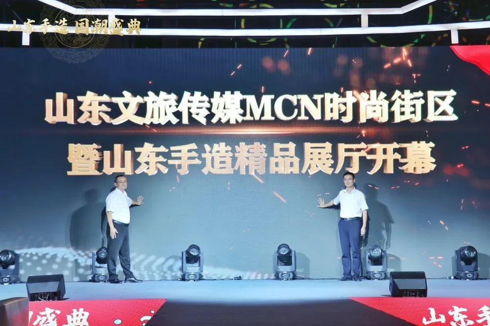 濟南市歷下區(qū)委常委、宣傳部部長、教育工委書記賈文,山東文旅傳媒集團黨委書記、董事長龐道鋒共同為山東文旅傳媒MCN時尚街區(qū)暨“山東手造”精品展廳揭幕。