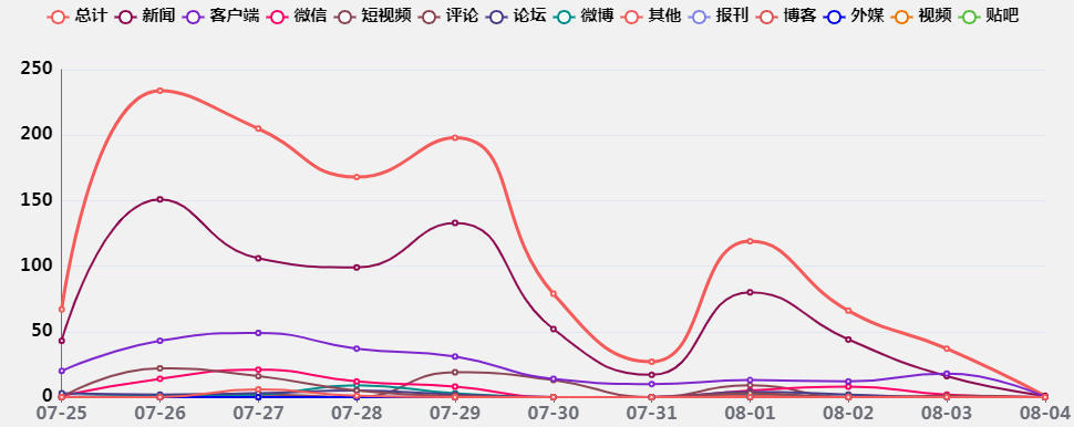 一是各類媒體平臺參與度高,活動影響力傳播周期長。從輿情走勢圖來看,第二期主題采訪活動開始后,信息量持續(xù)走高,于次日達到最高峰值,整個活動期間,活動相關(guān)信息量維持在高位,活動結(jié)束后也持續(xù)有相關(guān)報道出現(xiàn)。