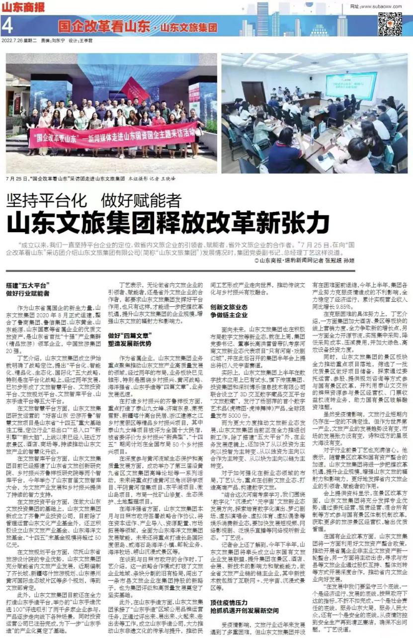 省國資委主辦的“國企改革看山東”——主題采訪活動第二期已圓滿收官,來自中央和省級新聞單位的媒體記者走進山東文旅集團,深度探訪了山東文旅在國企改革三年行動中的成果、亮點。