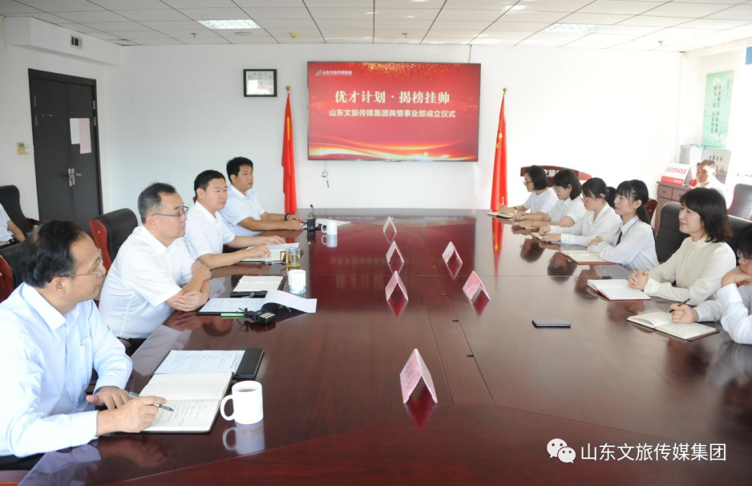 8月31日,山東文旅傳媒集團隆重舉行“優(yōu)才計劃·揭榜掛帥”授旗儀式。山東文旅傳媒集團黨委書記、董事長龐道鋒為第一個揭榜掛帥的部位——山東文旅傳媒集團輿情事業(yè)部(以下簡稱“輿情事業(yè)部”)頒授帥旗。黨委委員、總經(jīng)理王法爭,黨委委員、紀委書記翟樹東出席儀式。儀式由黨委委員、副總經(jīng)理張長杰主持。