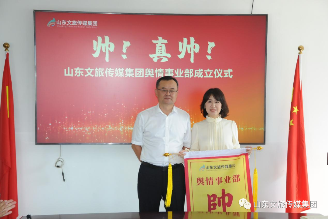 儀式上,王法爭首先宣讀了《關(guān)于成立山東文旅傳媒集團輿情事業(yè)部的通知》。隨后,龐道鋒為輿情事業(yè)部負責人王新頒授帥旗。