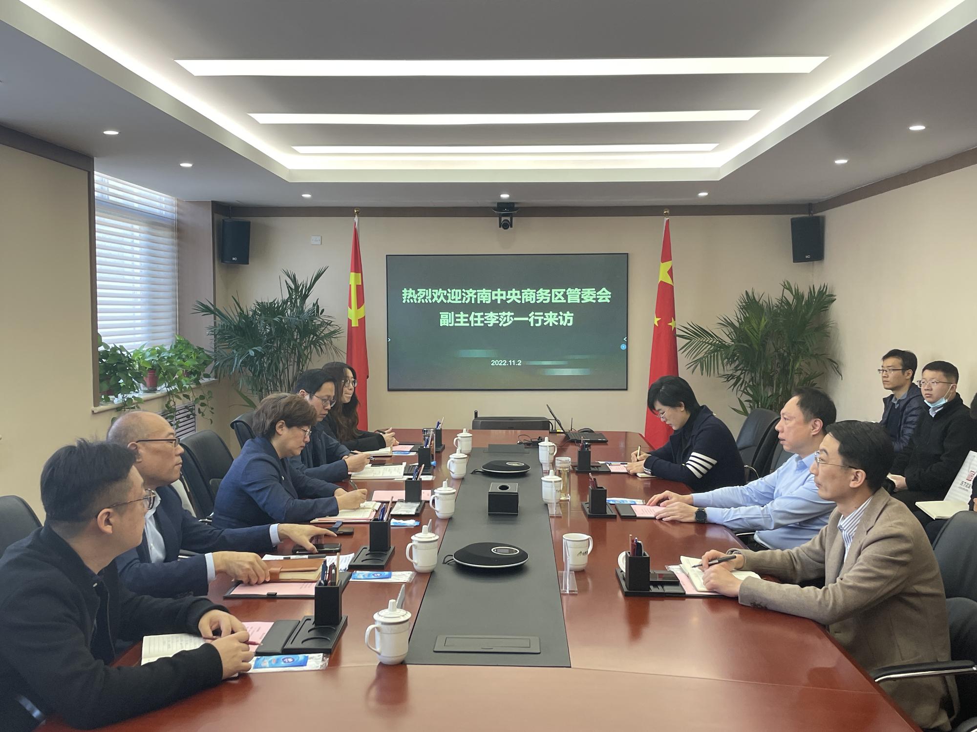 11月2日,濟(jì)南中央商務(wù)區(qū)管委會(huì)副主任李莎一行到訪山東文旅集團(tuán),集團(tuán)黨委副書記、總經(jīng)理丁藝會(huì)見并參加座談。