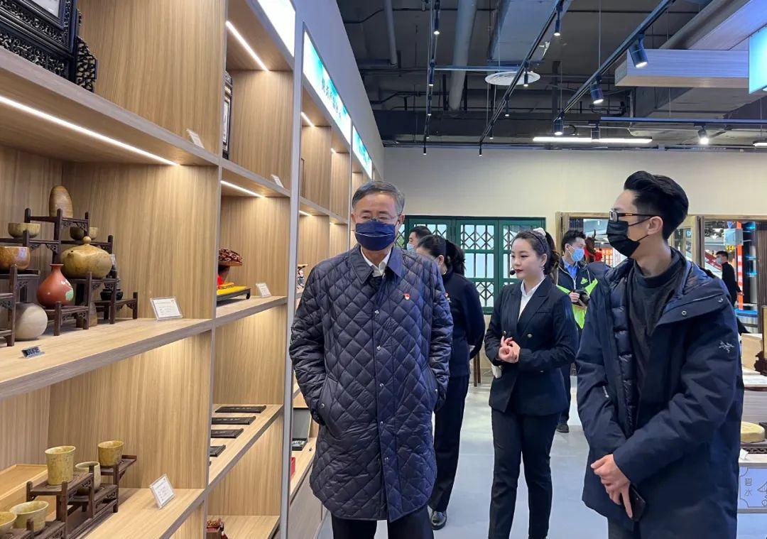 來到二樓,“濟(jì)南府”的一套12生肖酒杯套裝又讓省公安廳組織教育處的黨員干部們嘖嘖稱奇,栩栩如生的銀制12生肖背后是手藝人點點滴滴的匠心積累。“文化濟(jì)寧”窗口店以儒家文化和運河文化為主題,根植于齊魯大地的文化沃土,又具有鮮明的地域特色。店內(nèi)的孔子像分別由檀木、楷木雕刻而成,一錘一鑿,“木”上生花,精湛的技藝讓木頭有了靈魂。