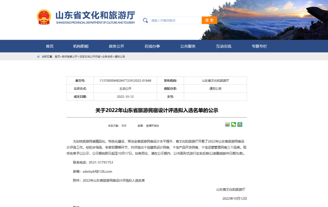 近日,山東省文化和旅游廳公布了2022年山東省旅游民宿設(shè)計(jì)評(píng)選入選名單。經(jīng)初步篩選、專家投票、網(wǎng)站公示等環(huán)節(jié),共評(píng)選出十佳建筑設(shè)計(jì)民宿、十佳產(chǎn)品開(kāi)發(fā)民宿、十佳運(yùn)營(yíng)管理民宿三個(gè)品類。山鄉(xiāng)集團(tuán)泰山九女峰鄉(xiāng)村振興示范區(qū)“故鄉(xiāng)的云”高端野奢度假酒店成功入選“十佳產(chǎn)品開(kāi)發(fā)民宿”、泰山九女峰·野有院民宿(原八樓氧心谷)成功入選“十佳運(yùn)營(yíng)管理民宿”。