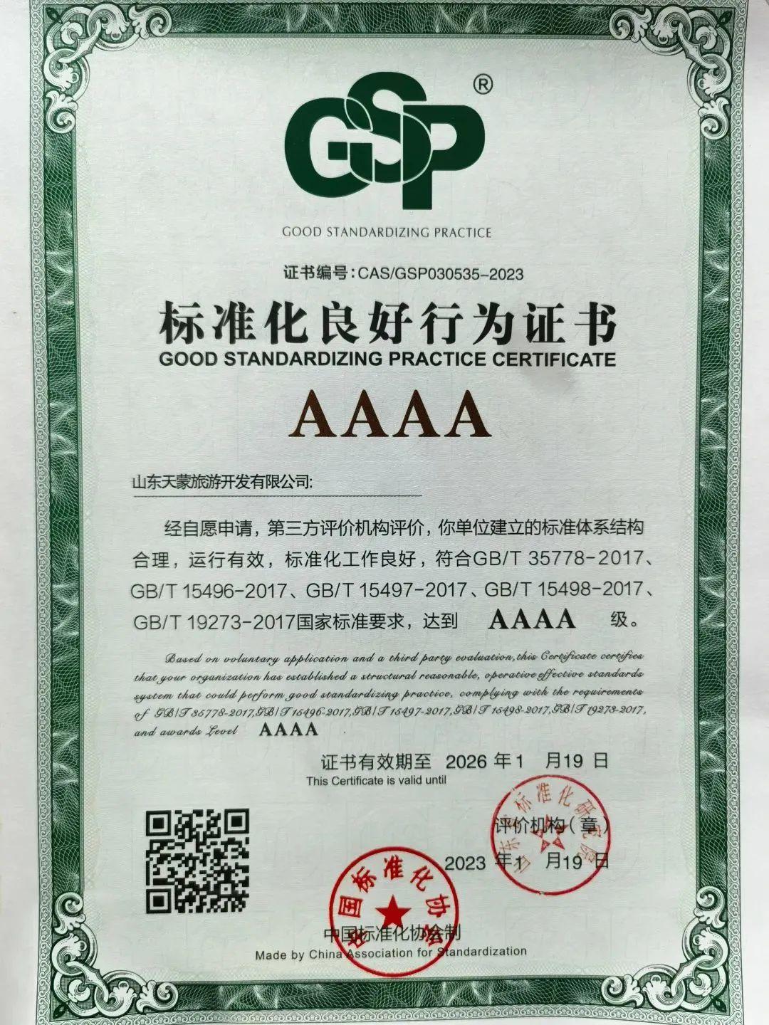 近日,沂蒙山銀座天蒙旅游區(qū)(以下簡(jiǎn)稱“天蒙景區(qū)”)順利通過(guò)山東省標(biāo)準(zhǔn)化研究院組織的企業(yè)標(biāo)準(zhǔn)化良好行為專家組評(píng)審,獲評(píng)4A級(jí)“標(biāo)準(zhǔn)化良好行為企業(yè)”,成為臨沂市首家榮獲此殊榮的旅游景區(qū)。