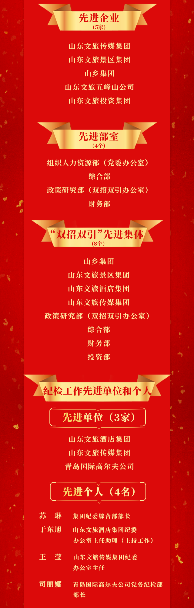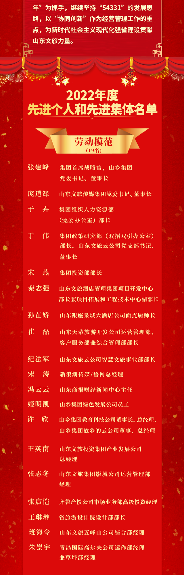 山東文旅集團2022年度先進集體和先進個人榮譽榜揭曉