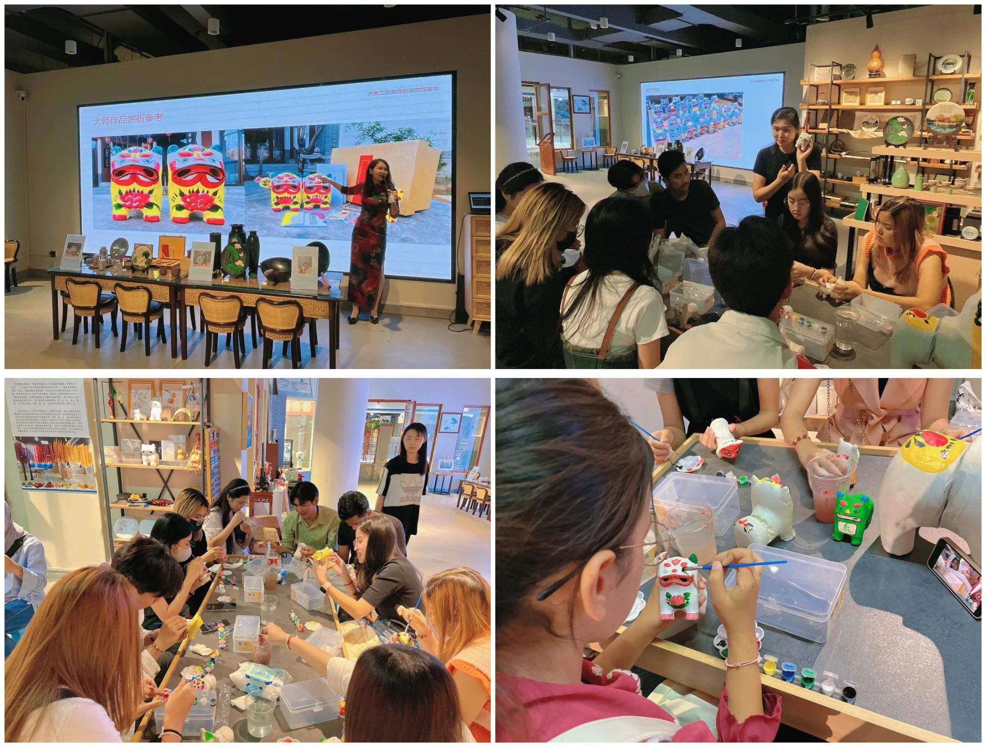 最后留學(xué)生們來到濟(jì)南府體驗?zāi)嘟谢⒗L制項目。這是山東最與眾不同的非遺泥塑,是濰坊高密的特色民間藝術(shù)品?!斑@只泥老虎肚子里有個哨子,將頭部和尾部一推一拉,能發(fā)出嗚嗚的叫聲,所以也稱泥叫虎?!痹谘袑W(xué)導(dǎo)師的講解中,留學(xué)生們也慢慢理解了這項非遺技藝的神奇。大家拿起手中的畫筆和顏料,繪制屬于自己的泥叫虎,也寄托了保佑平安、避免災(zāi)邪的美好期待。