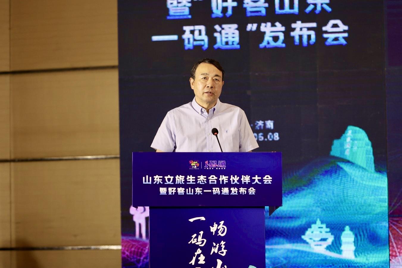 6月8日上午,山東文旅生態(tài)合作伙伴大會(huì)暨“好客山東一碼通”發(fā)布會(huì)在濟(jì)南舉辦。本次活動(dòng)由山東省文化和旅游廳、山東省人力資源和社會(huì)保障廳、山東省大數(shù)據(jù)局指導(dǎo),山東文旅集團(tuán)主辦,山東省旅游行業(yè)協(xié)會(huì)支持,山東文旅云智能科技有限公司(簡(jiǎn)稱“文旅云公司”)承辦,建設(shè)銀行山東省分行協(xié)辦。山東文旅集團(tuán)黨委書記、董事長(zhǎng)高洪雷,省文旅廳黨組成員、副廳長(zhǎng)孫蕾,省人社廳二級(jí)巡視員李洪吉,省大數(shù)據(jù)局總工程師綦琳,中國(guó)旅游協(xié)會(huì)副會(huì)長(zhǎng)、省旅游行業(yè)協(xié)會(huì)會(huì)長(zhǎng)王德剛,建設(shè)銀行山東省分行副行長(zhǎng)王憲明,山東文旅集團(tuán)黨委副書記、總經(jīng)理丁藝,山東文旅集團(tuán)黨委副書記、工會(huì)主席季將出席會(huì)議。