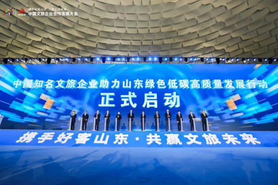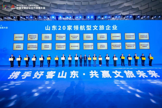 開幕式上,國內(nèi)重點(diǎn)文旅企業(yè)分享了投資山東經(jīng)驗(yàn),知名文旅企業(yè)發(fā)布在魯合作需求,視頻發(fā)布山東重點(diǎn)文旅招商項(xiàng)目,為山東20家領(lǐng)航型文旅企業(yè)、山東十佳民營文旅企業(yè)領(lǐng)軍人物授牌。山東文旅集團(tuán)入選首批20家領(lǐng)航型文旅企業(yè),并在省文旅廳等部門指導(dǎo)下,發(fā)起組建山東文旅企業(yè)聯(lián)盟,涵蓋全省旅游景區(qū)、酒店、文旅集團(tuán)、文化企業(yè)等近100家企業(yè)。另外,山東文旅集團(tuán)與國內(nèi)其他11家知名文旅企業(yè)共同啟動中國知名文旅企業(yè)助力山東綠色低碳高質(zhì)量發(fā)展行動。