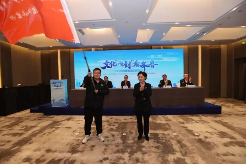 張靜為網(wǎng)絡(luò)名人采風(fēng)團授旗,“文化‘兩創(chuàng)’看齊魯”——第五屆返故鄉(xiāng)·看發(fā)展網(wǎng)絡(luò)名人山東行活動正式啟動。