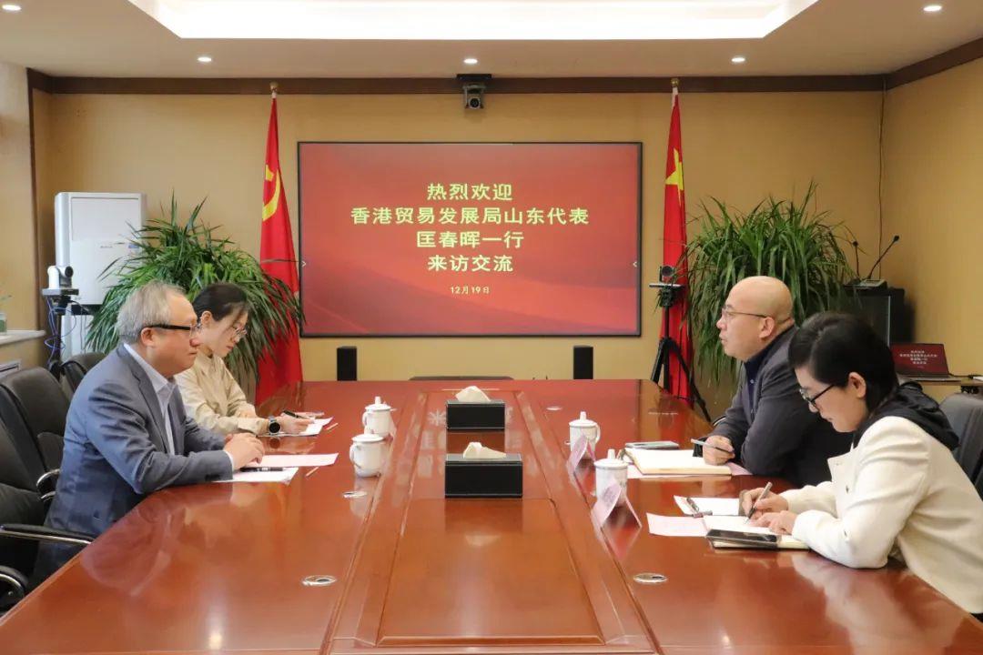 12月19日,香港貿(mào)易發(fā)展局山東代表匡春暉一行到山東文旅集團(tuán)座談交流,集團(tuán)黨委委員、副總經(jīng)理孫超會(huì)見(jiàn)。
