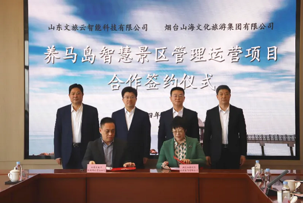 3月30日,山東文旅集團旗下文旅云公司與煙臺山海文化旅游集團有限公司就養(yǎng)馬島智慧景區(qū)管理運營項目舉行簽約儀式,山東文旅集團黨委副書記、董事、總經(jīng)理門家春,煙臺市牟平區(qū)委副書記、區(qū)長李劍出席儀式并致辭。會議由牟新發(fā)展集團總經(jīng)理陳業(yè)主持。