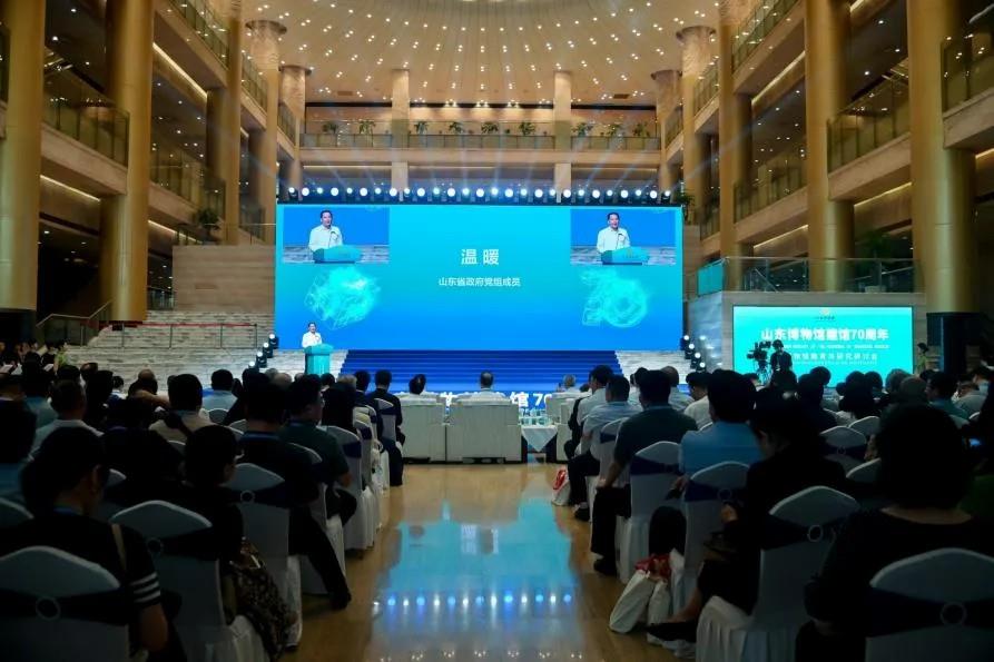 2024年7月25日,山東博物館建館70周年暨博物館教育與研究研討會開幕式在山東博物館一樓禮儀大廳隆重舉行。山東省副省長、省政府黨組成員溫暖,國家文物局博物館與社會文物司司長劉洋,中國文物學(xué)會會長顧玉才,中國博物館協(xié)會理事長劉曙光,山東省文化和旅游廳黨組書記、廳長、省文物局局長王磊共同啟動山東博物館建館70周年系列展覽。山東文旅集團黨委書記、董事長丁藝受邀出席開幕式并與山東博物館簽訂戰(zhàn)略合作協(xié)議。