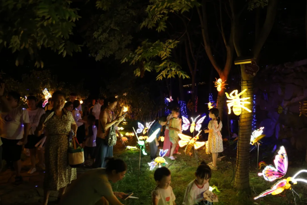 “大美天蒙,沂蒙天境”沉浸式山體光影秀,利用虛擬成像技術(shù)、激光3D成像技術(shù),為游客演繹全息投影《高山流水》、山體光影激光秀、3D 激光投影秀,實(shí)現(xiàn)“科技+文旅”融合高質(zhì)量發(fā)展,達(dá)到自然之美與藝術(shù)人文的契合。螢火蟲、蒲公英、蝴蝶等造型燈光烘托童趣氛圍,創(chuàng)造豐富的視覺效果。2024年暑期天蒙景區(qū)夜游產(chǎn)品通過“夜游光影+互動(dòng)裝置+網(wǎng)紅打卡”的演繹,為游客帶來視覺盛宴使人流連忘返。