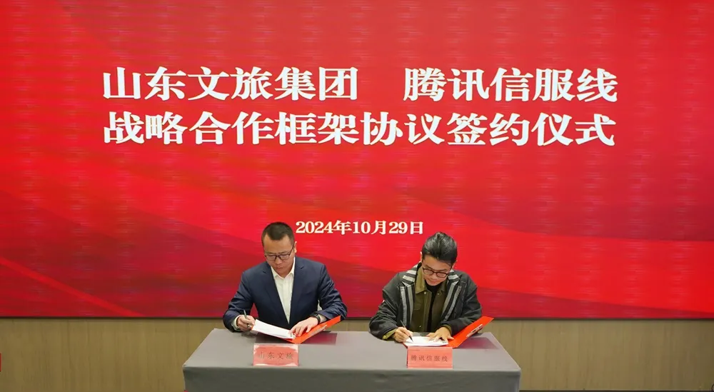 10月29日,山東文旅集團與騰訊信息平臺與服務(wù)線簽約儀式舉行。集團黨委書記、董事長丁藝出席簽約儀式。