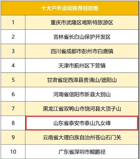 近日,由中華全國體育總會(huì)主辦的2024中國戶外運(yùn)動(dòng)產(chǎn)業(yè)大會(huì)在云南開幕,此次大會(huì)旨在推動(dòng)戶外運(yùn)動(dòng)產(chǎn)業(yè)高質(zhì)量發(fā)展。開幕式上,中國登山協(xié)會(huì)發(fā)布了2024戶外運(yùn)動(dòng)·登山戶外運(yùn)動(dòng)目的地,山東文旅山鄉(xiāng)集團(tuán)泰山九女峰鄉(xiāng)村旅游度假區(qū)入選。