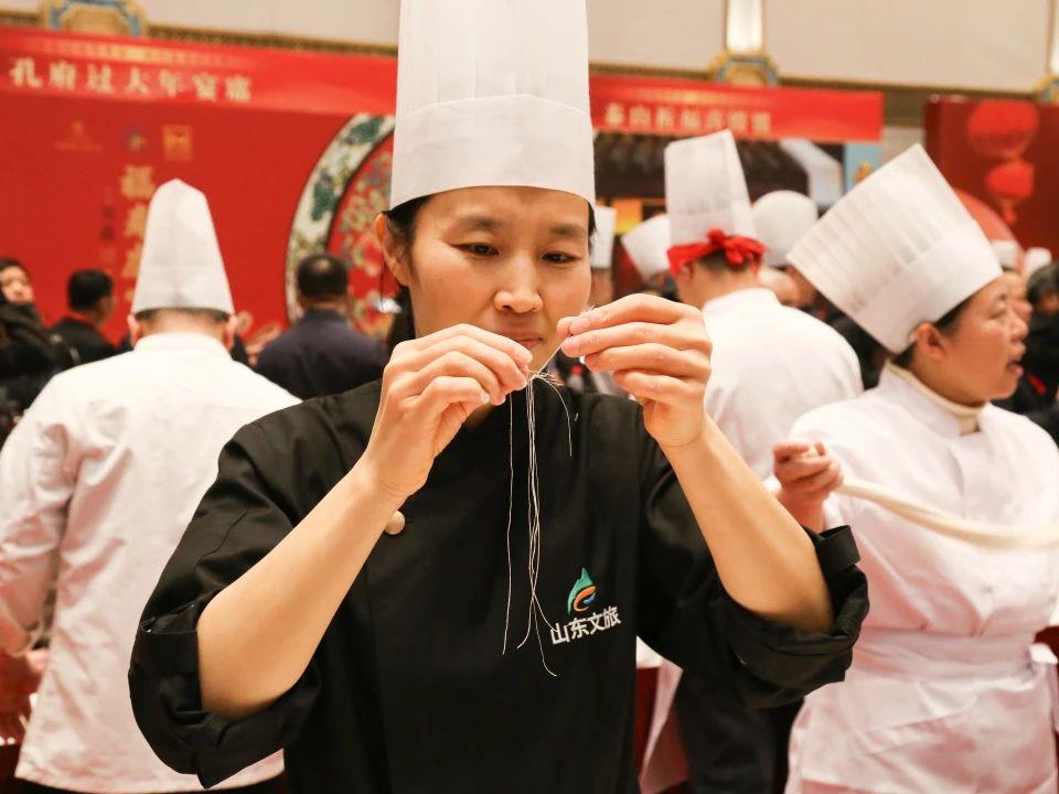 近日,山東省“百道經(jīng)典魯菜、百道網(wǎng)紅小吃、百位魯菜名廚、百條美食名街”(“四個一百”)評選活動成果展示匯報會在濟南舉行。山東文旅酒店集團怡豪大飯店張俊民、菏澤頤庭華美達酒店于德水、臨沂魯商鉑爾曼大酒店尹博入選“百位魯菜名廚”,泉城大酒店獲評“經(jīng)典魯菜示范店”,齊魯首席技師、非遺傳承人孫在嬌現(xiàn)場展示非遺盤絲餅制作技藝。
