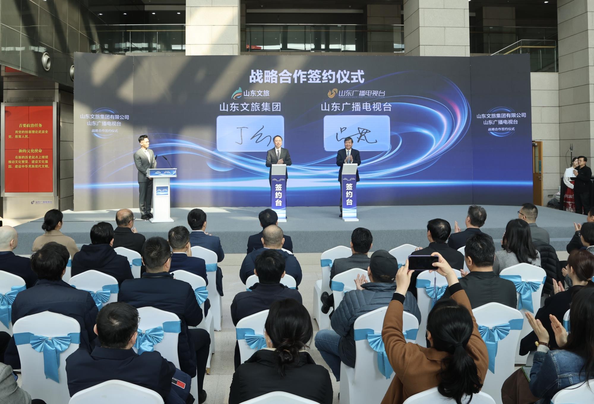2月25日,山東文旅集團(tuán)與山東廣播電視臺戰(zhàn)略合作簽約儀式在濟(jì)南舉行。山東廣播電視臺黨委書記、臺長呂芃,山東文旅集團(tuán)黨委書記、董事長丁藝出席儀式并致辭。