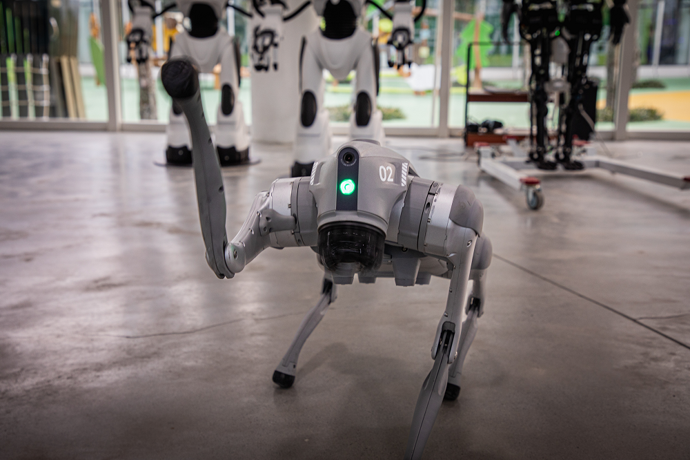 宇樹科技GO2pro機(jī)器狗化身“超能導(dǎo)游”,跳躍、伸懶腰、握手、坐下、跳舞、翻跟頭、倒立行走等指令統(tǒng)統(tǒng)不在話下,完全是一只能陪你瘋、幫你忙的賽博寵物。此外,在醉東風(fēng)的未來田園藝術(shù)中心,元宇宙體驗(yàn)設(shè)備、VR體驗(yàn)設(shè)備等也將帶游客踏入由數(shù)據(jù)流編織的異想世界,讓人腎上腺素飆升。