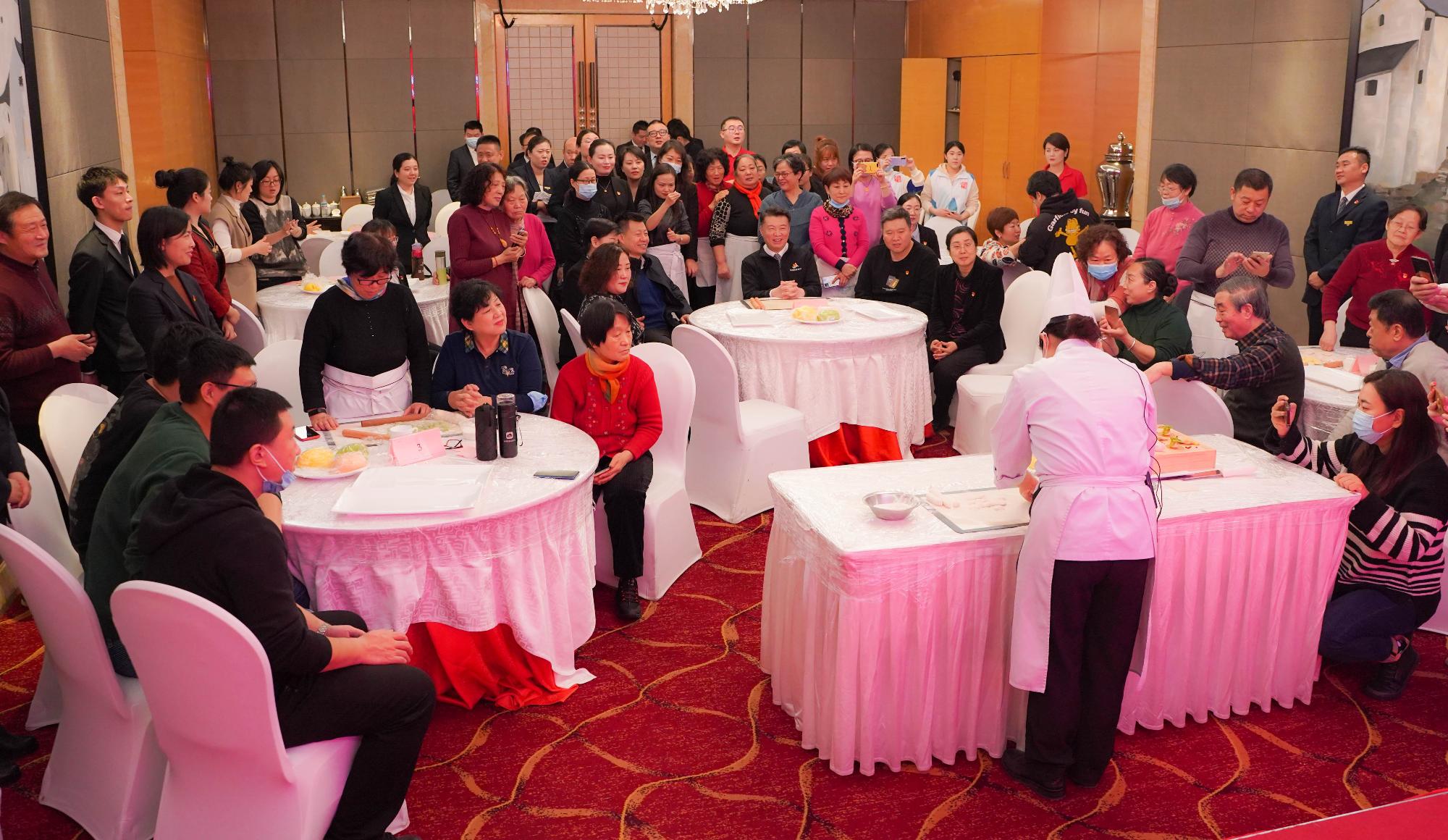 活動現(xiàn)場,濟(jì)南索菲特銀座大飯店餅房廚師長梁敏現(xiàn)場教授花式水餃的包法,并介紹了冬至吃餃子的來歷。現(xiàn)場參會人員分為7個小組包餃子并進(jìn)行PK,評出了“最快餃子”團(tuán)隊和“最美餃子”團(tuán)隊。