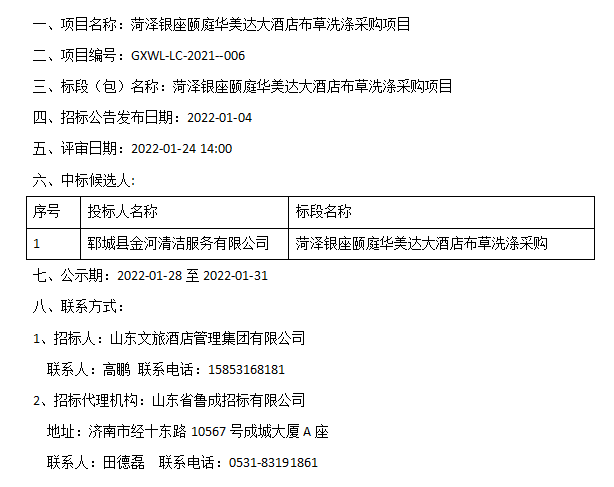 菏澤銀座頤庭華美達(dá)大酒店布草洗滌采購項(xiàng)目中標(biāo)候選人公示